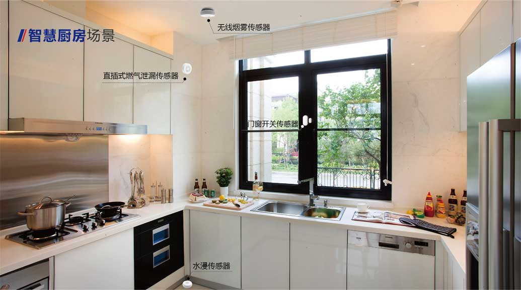 在廚房中可以安裝煙霧探測器和燃氣泄漏探測器,防止意外事故的發生。