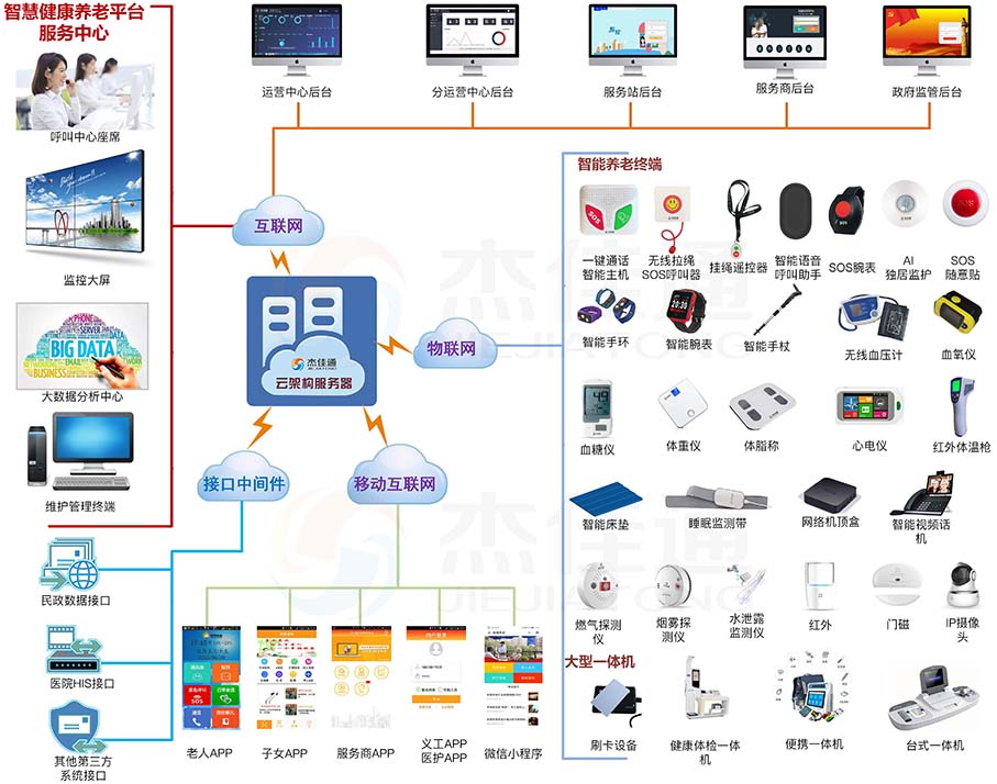杰佳通智慧健康養(yǎng)老平臺應用于居家養(yǎng)老、機構養(yǎng)老、社區(qū)養(yǎng)老、醫(yī)養(yǎng)結合、地產養(yǎng)老、旅居養(yǎng)老、養(yǎng)老教學實訓和政府監(jiān)管養(yǎng)老,已有幾千家養(yǎng)老運營單位在使用。